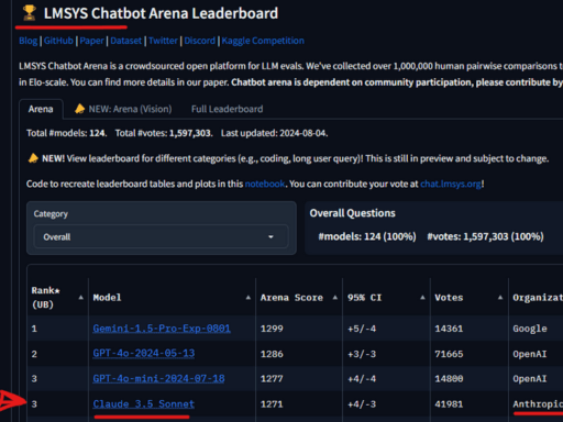 Para te contextualizar, o modelo Sonnet 3.5 ocupa o 3º lugar no Rank (UB) da LMSYS Chatbot Arena Leaderboard.
